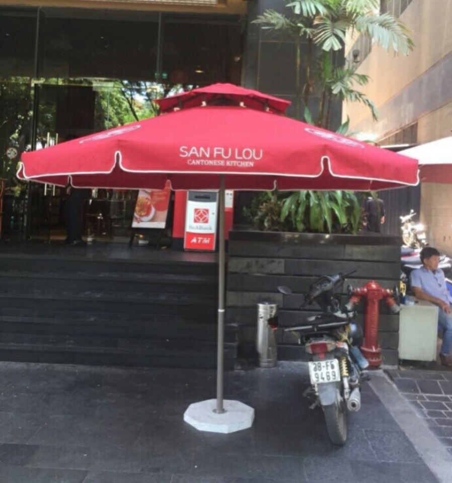 Mẫu dù này rất dễ bố trí và phù hợp cho mọi kiểu không gian. Đặc biệt nhất vẫn là nhà hàng, quán cà phê, sân vườn, hồ bơi, sân thượng.
